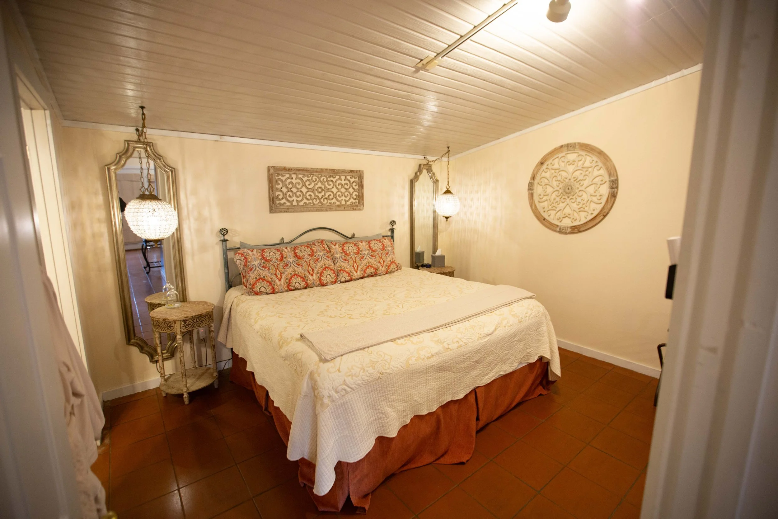 Facing Royal Street, these accommodations are all 1st floor, and are closest to the shopping and arts districts. Conveniently located closest to our event center, and just down the street from the beautiful, Creekside grounds of our three-tier deck.